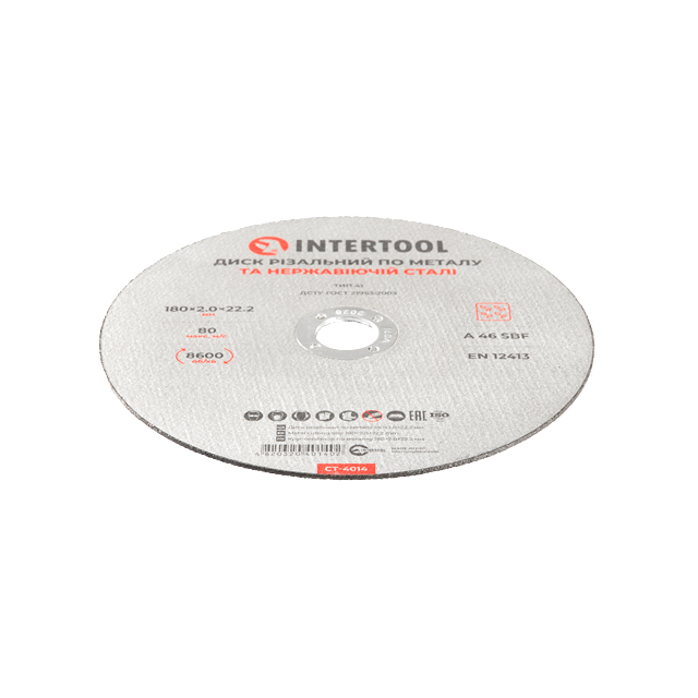 Характеристики Отрезной диск по металлу 180x2.0x22.2мм INTERTOOL CT-4014 код товару CT-4014