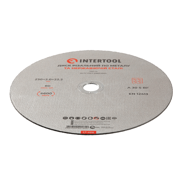 Характеристики Отрезной диск по металлу 230x2,0 мм INTERTOOL CT-4016 код товару CT-4016