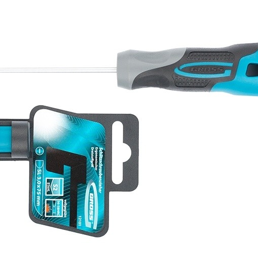 Описание Отвертка SL 3,0 x 75 мм, трехкомпонентная рукоятка GROSS код товару 12101G