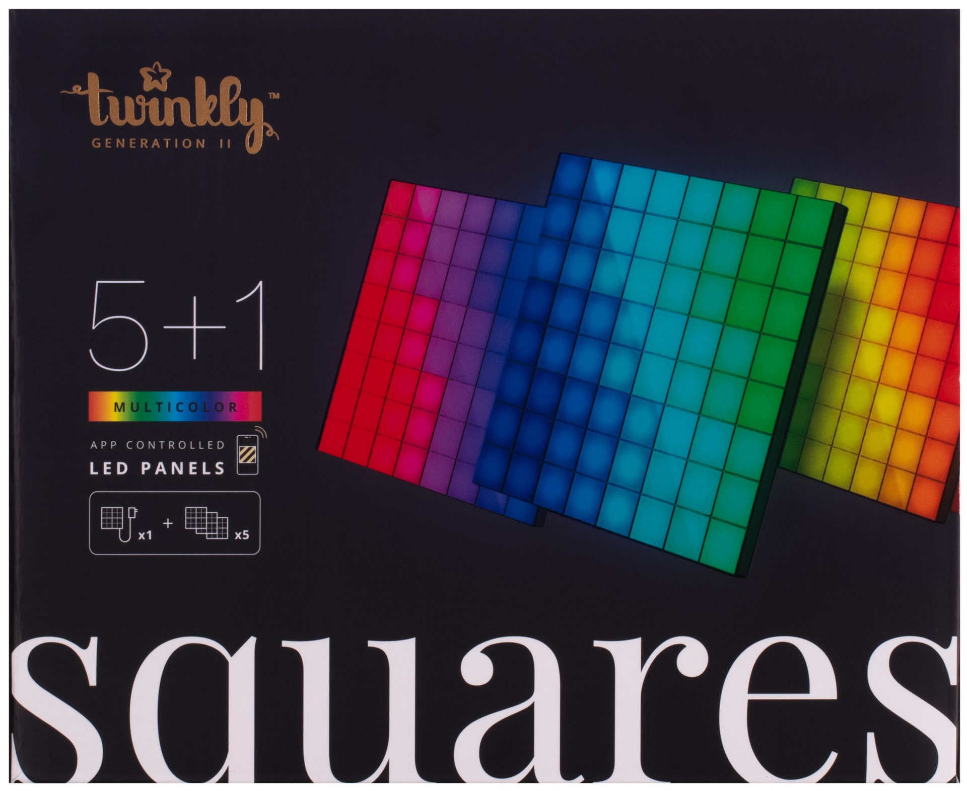 Описание Панель Smart LED Twinkly Squares 1 Starter + 5 Extension RGB IP20 16x16см кабель білий код товару TWQ064STW-07-BEU