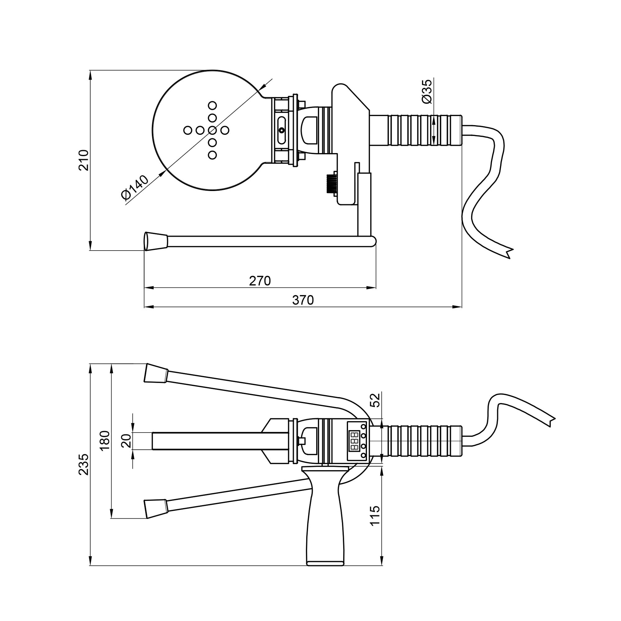 Паяльник Blue Ocean 75-110 с верхним цифровым дисплеем выполнен с удобной прорезиненной рукояткой и корпусом синего цвета, рогообразной подошвой с черными резиновыми насадками против скольжения во время работы и плоским нагревательным элементом с отверстиями для насадок. Мощность 1200 Вт позволит качественно и быстро спаять полипропиленовые трубы с наружным диаметром от 75 до 110 мм. Удобство эксплуатации заключается в возможности контролировать температурный режим и ритм остывания-нагрева.