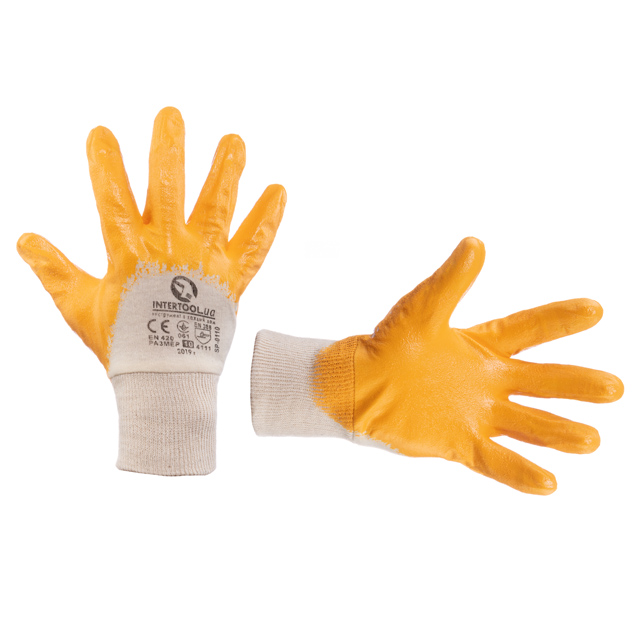 Описание Перчатка х/б трикотаж с нитриловым покрытием 10 (желтая) INTERTOOL SP-0110 код товару SP-0110