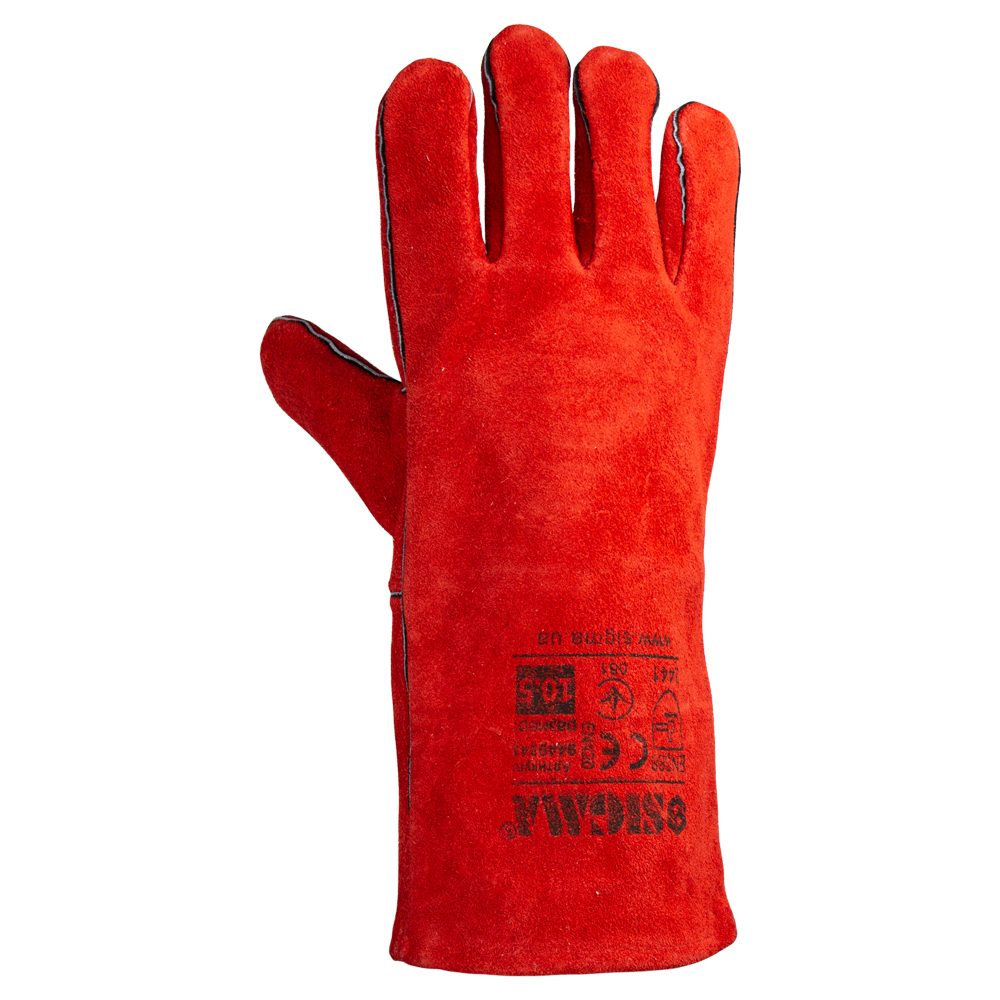 Описание Перчатки сварщика SIGMA, класс АВ, длина 35 см, красные (р10.5) код товару 9449341