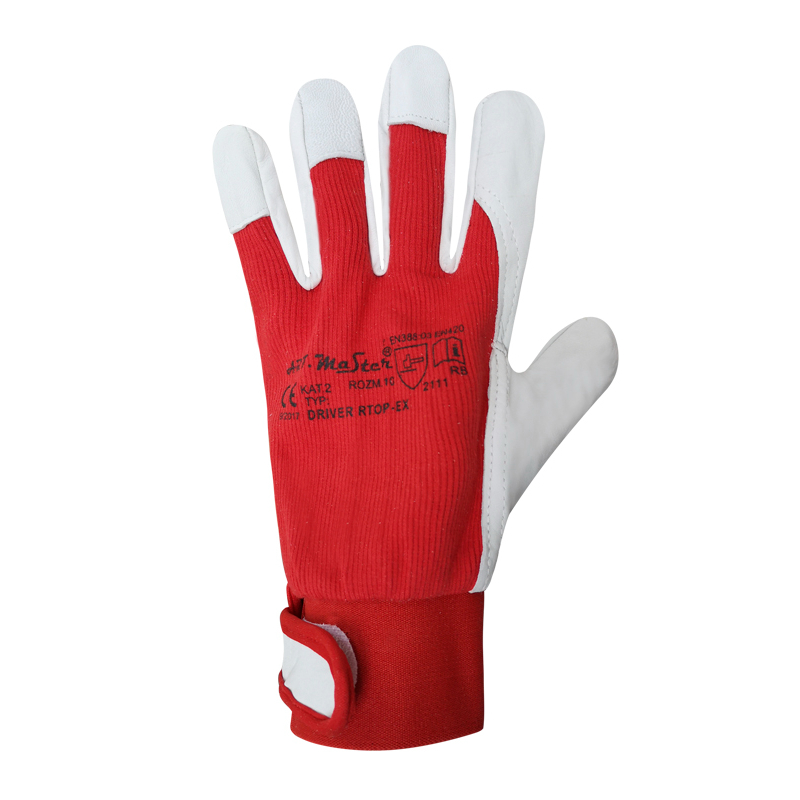 Характеристики Перчатки рабочие комбинированные ткань / белая кожа Rtop-EX, 9 размер код товару 69456