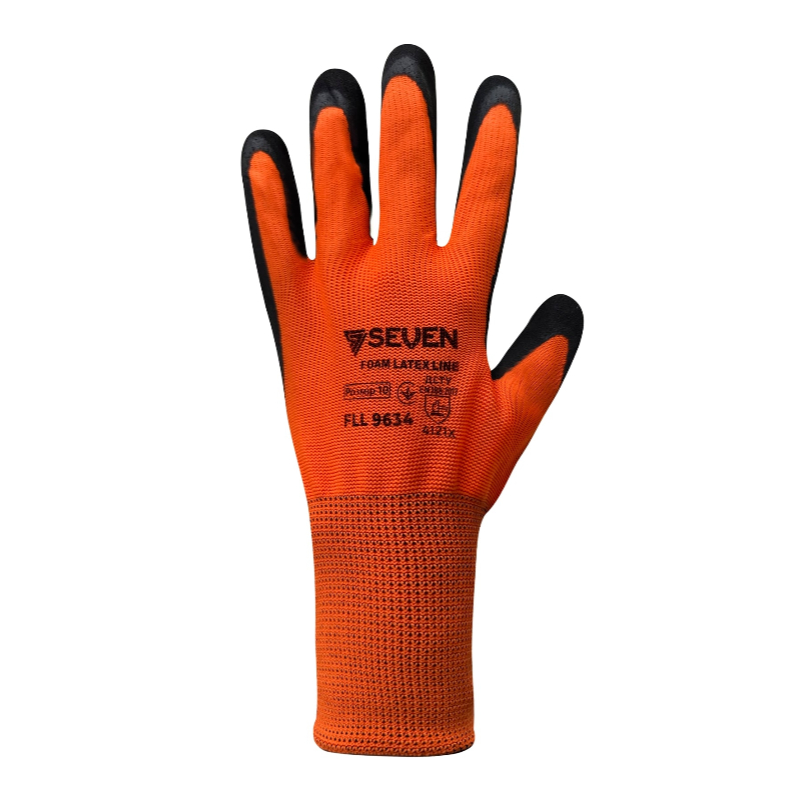 Характеристики Перчатки синтетические оранжевые с черным неполным вспененным латексным покрытием FLL 9634 "б" р.10 код товару 69634