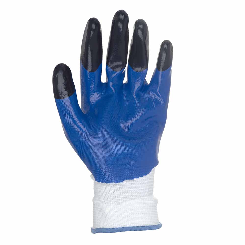 Перчатки трикотажные с нитриловым покрытием, усиленные пальцы, р9, сине-черные SIGMA