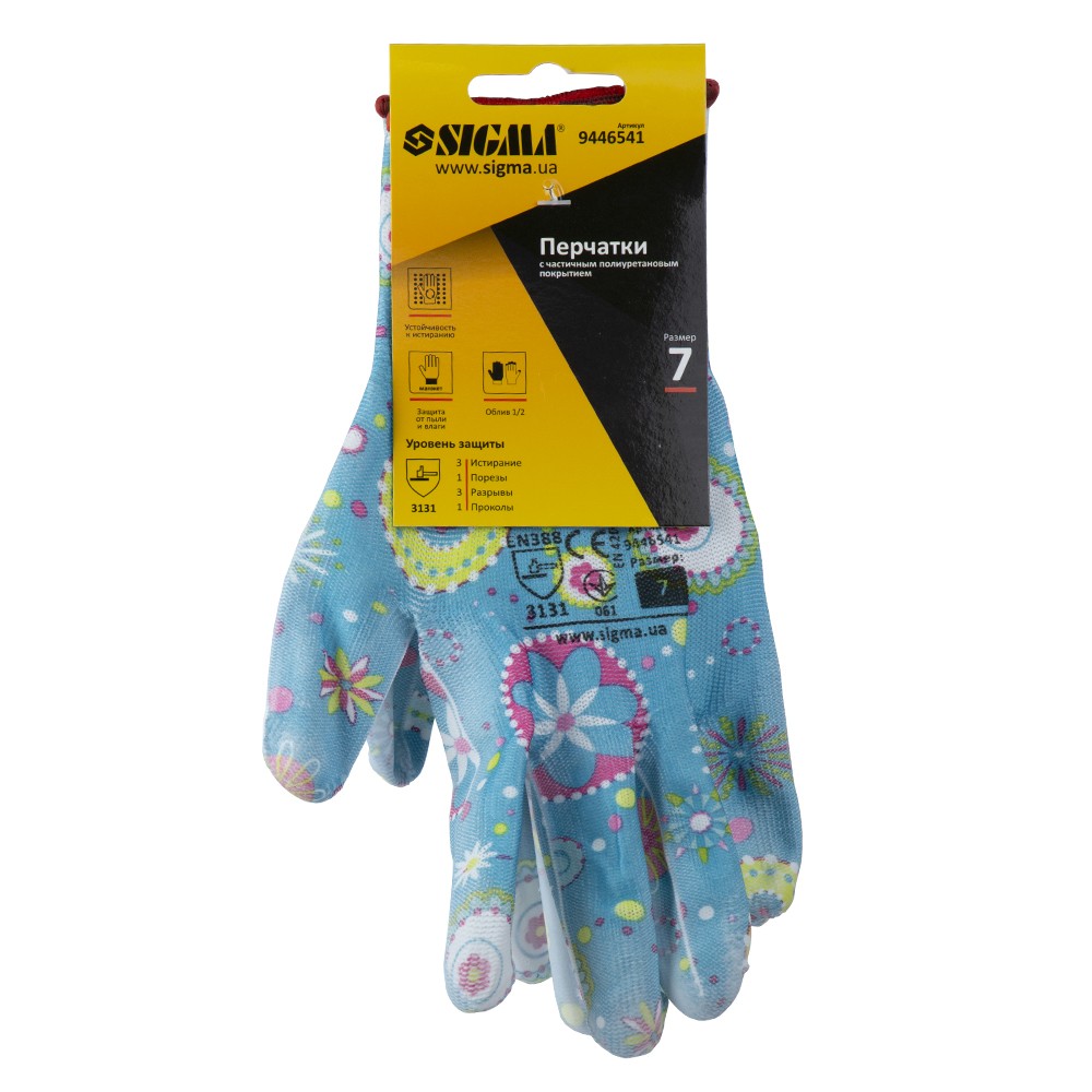 Характеристики Перчатки трикотажные с частичным ПУ покрытием р7 (синие, манжет) SIGMA код товару 10175