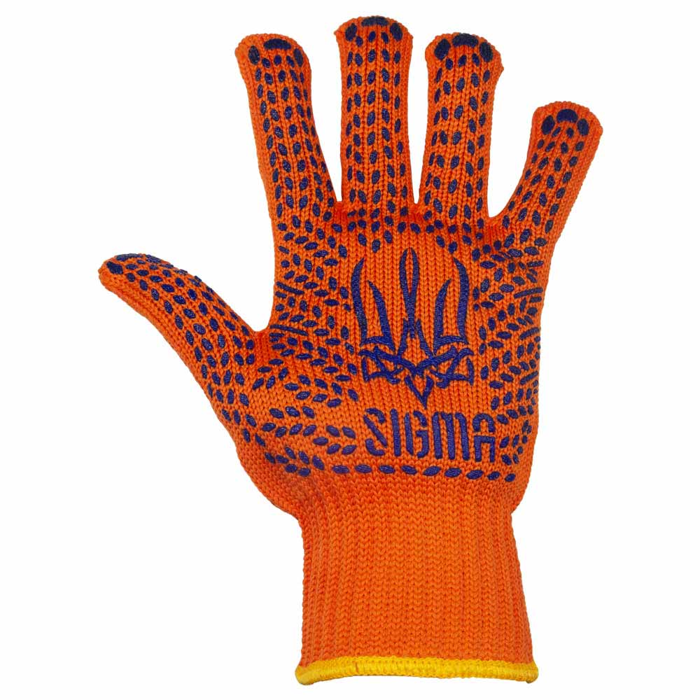 Перчатки трикотажные с ПВХ покрытием р10 Тризуб оранжевые SIGMA 12 пар код товару 9442591 Sigma