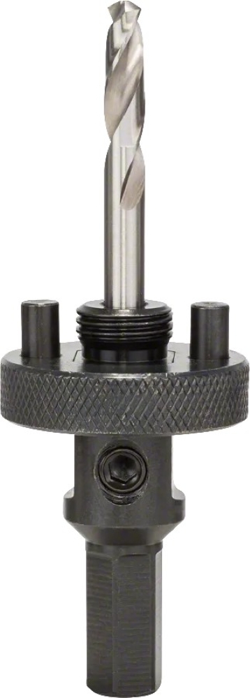 Перехідник Bosch Professional із шестигранним гніздом 5/8"-18 UNF (діаметром 32–210 мм) для під’єднання коронок до дрилів та шурупокрутів. Оснащений центрувальним свердлом HSS-G для точного спрямування.
