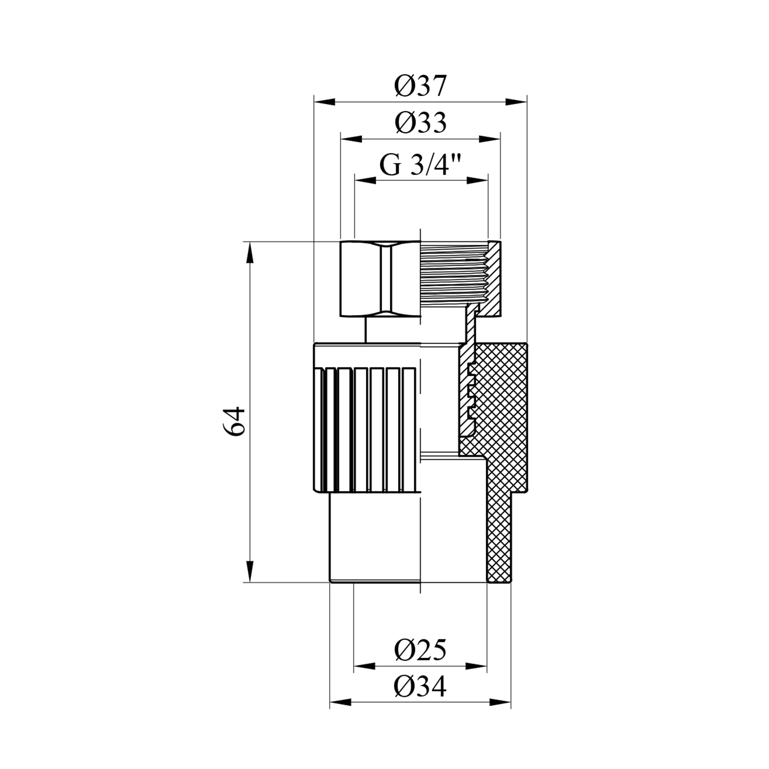 - Размер: 25 мм (внутренний диаметр) / 3/4 дюйма (резьба)