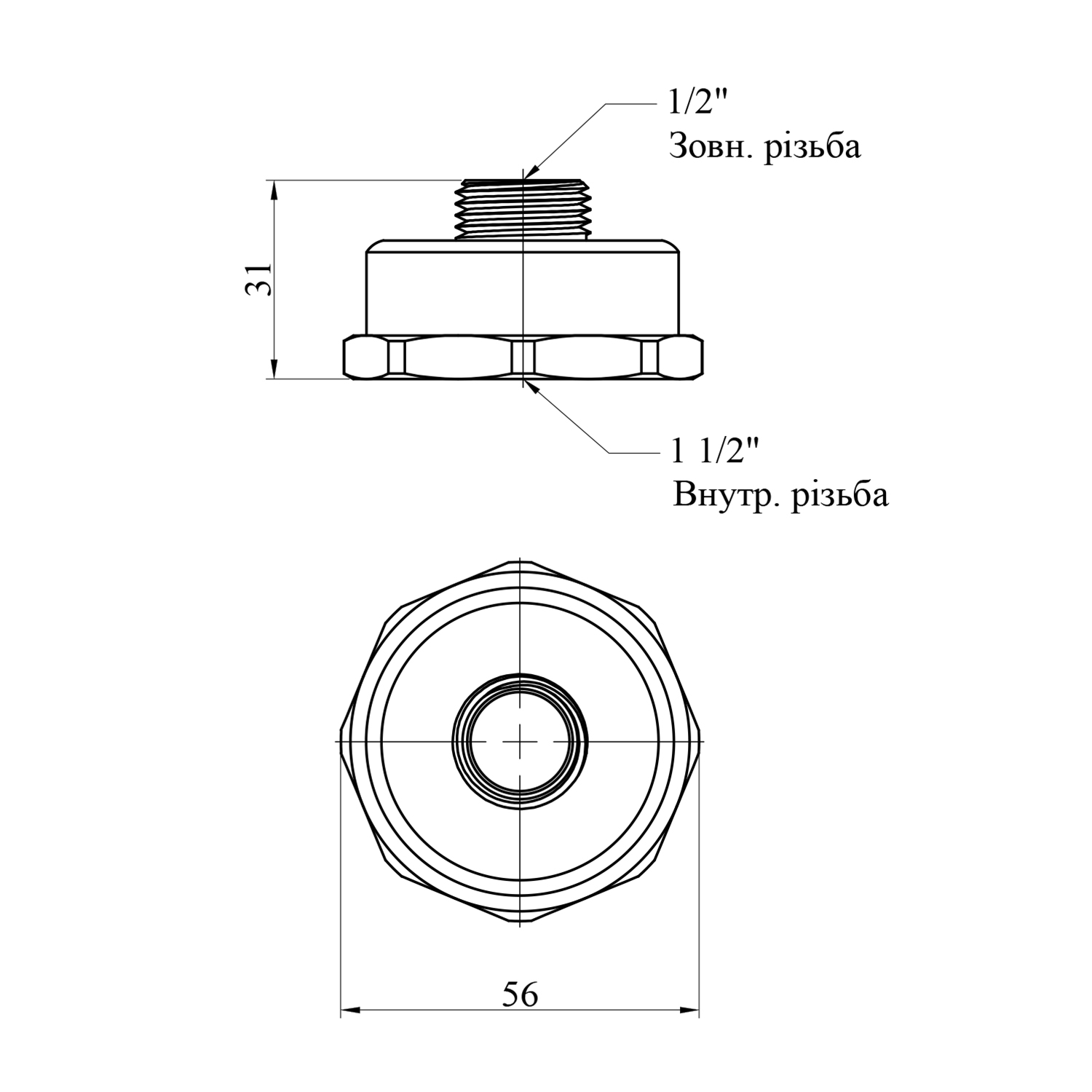 Описание Переходник STA 1 1/2'' х 1/2'' ВН латунный код товару CV022050