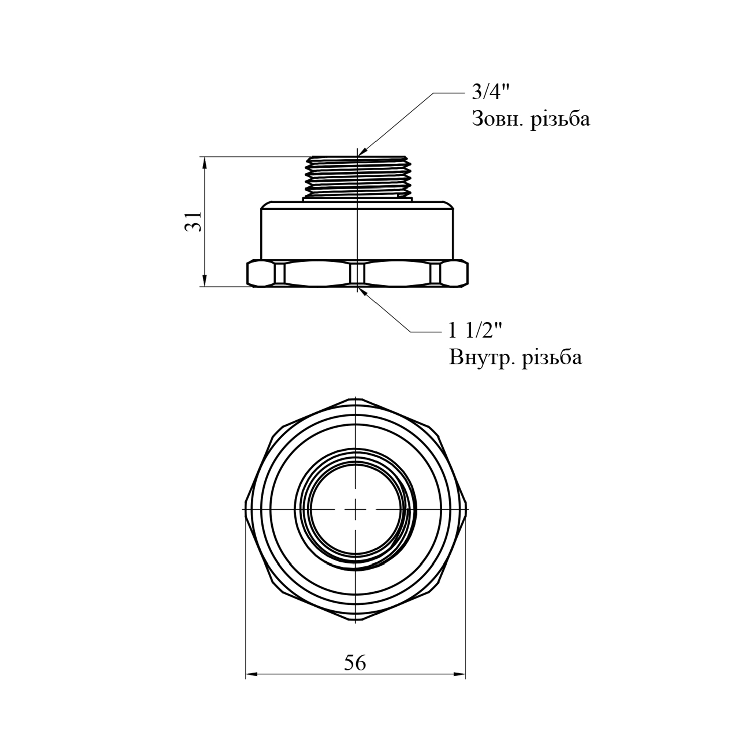 Характеристики Переходник STA 1 1/2х3/4 ВН латунный код товару CV022116