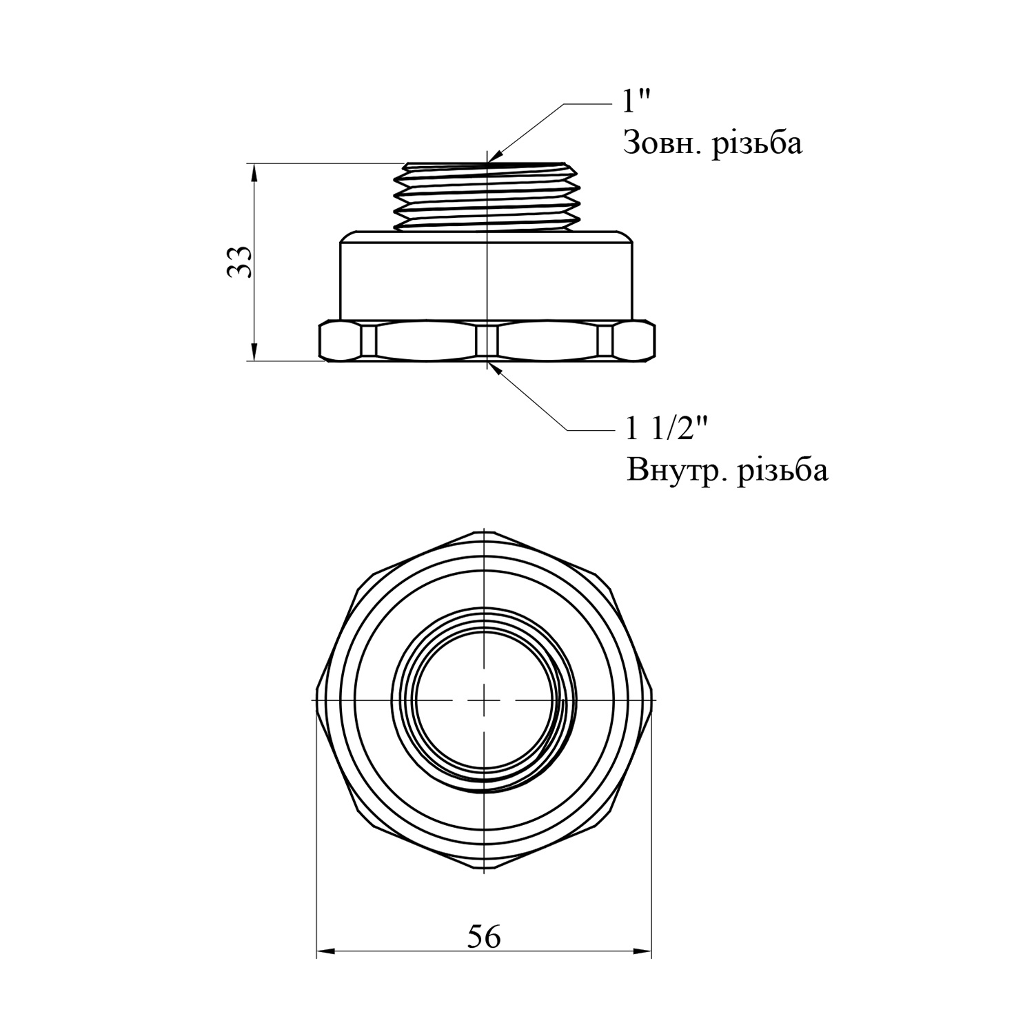 Описание Переходник STA 1 1/2х1 ВН латунный код товару CV022140