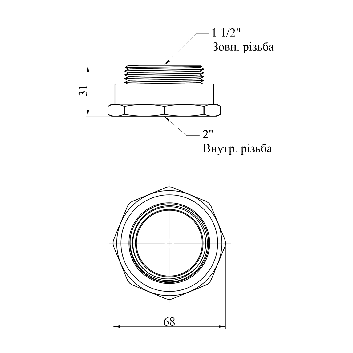 Характеристики Переходник STA 2x1 1/2 ВН латунный код товару CV022422