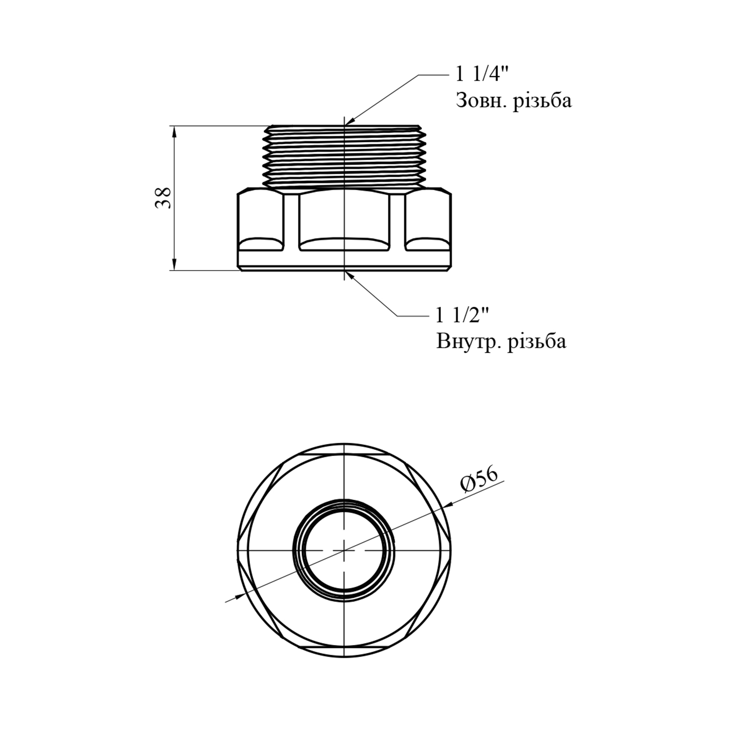Характеристики Переходник LexLine 1 1/2х1 1/4 ВН никелированный НК0618-Вн код товару CV016022