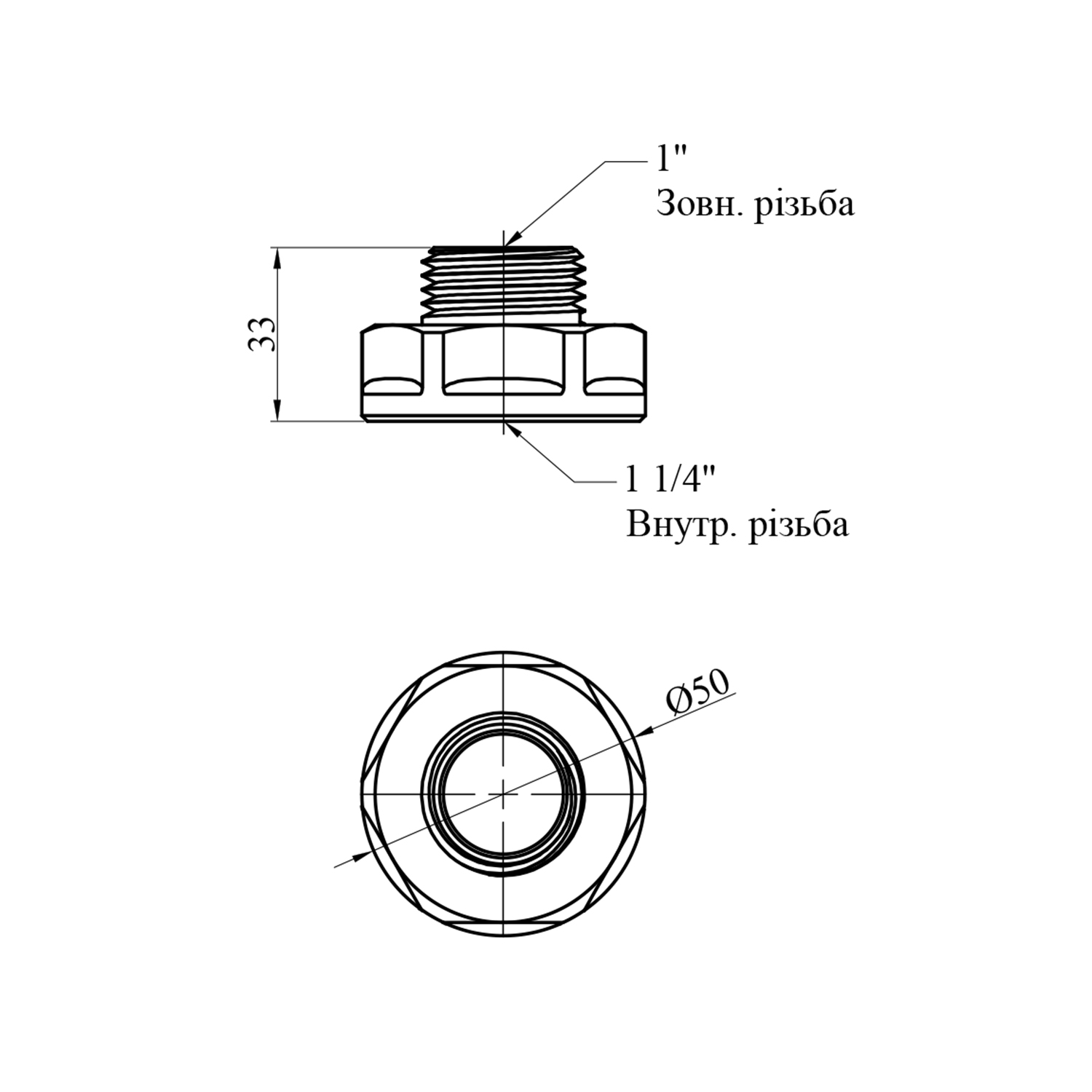 Характеристики Переходник LexLine 1 1/4х1 ВН никелированный НК0605-Вн код товару CV015132