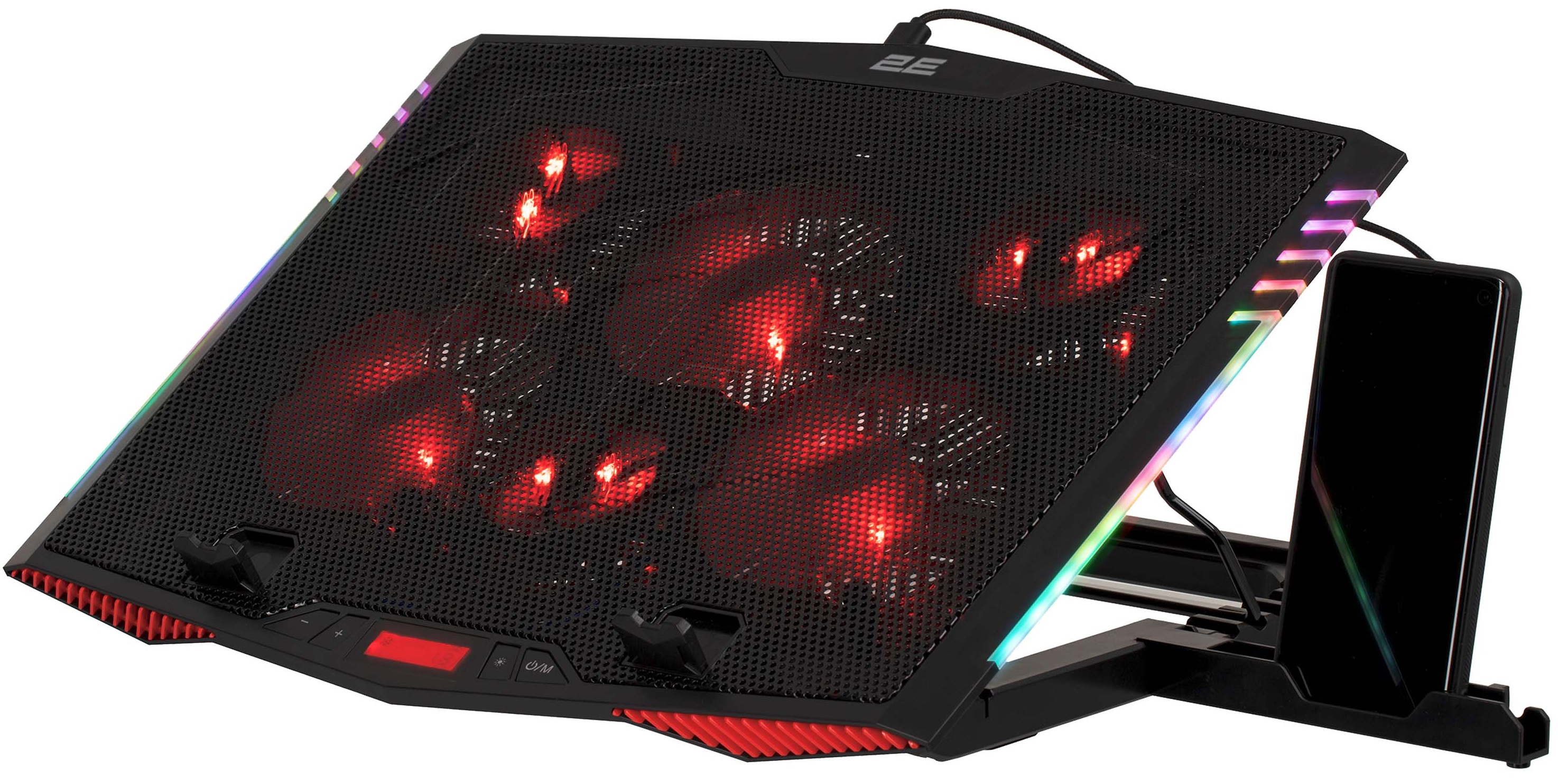Описание Підставка для ноутбука 2E GAMING CPG-005, до 17.3", 2xUSB-A, LCD/phone holder, RGB, чорний код товару 2E-CPG-005