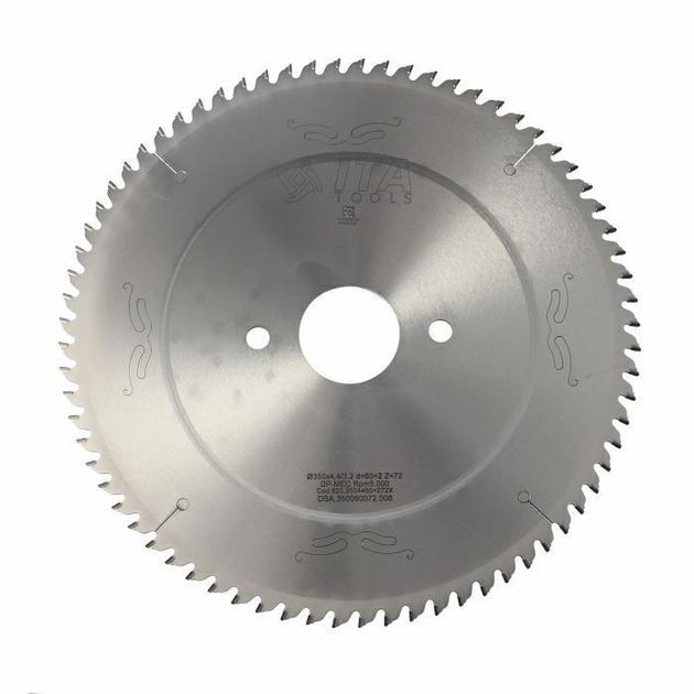 Характеристики Диск пильный Saw blade D=350 F=60 Z=72 K/P=4,4/3,2 H=6 FZ/TR PH:2/11/85 код товару DSA.350060072.006
