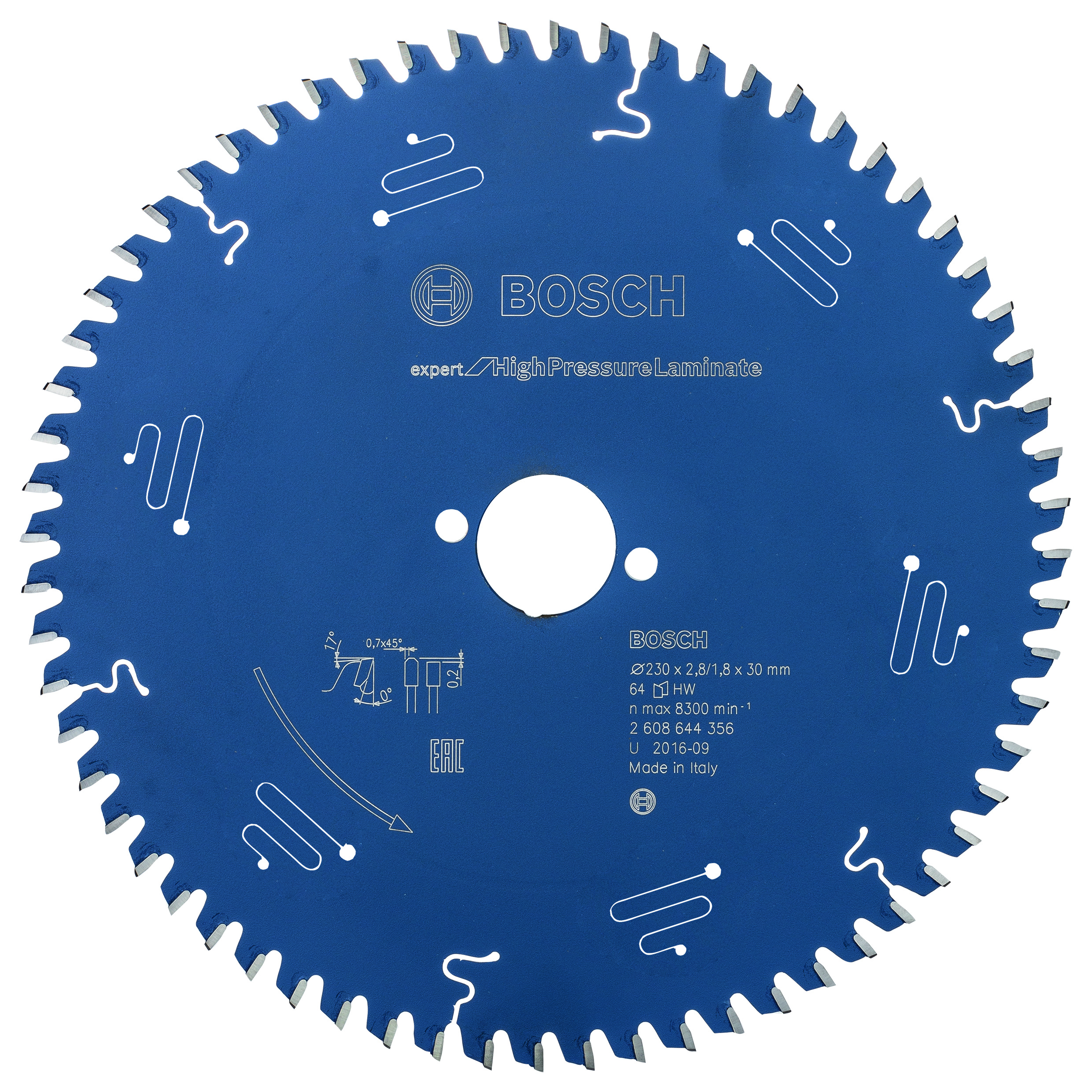 Характеристики Пильный диск 230 x 30 мм, 64 T по ламинату Expert BOSCH код товару 2608644356
