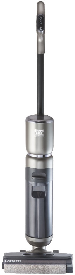 Характеристики Пилосос Thomas бездротовий AQUA FLOORCLEANER CORDLESS, 150Вт, конт пил -0,75л, автон. робота до 35хв, вага-4кг, НЕРА, голубий код товару 785501