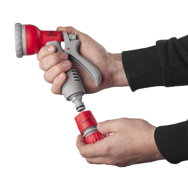 Характеристики Пистолет-распылитель 8 функций с адаптером и 2 коннекторами 1/2 INTERTOOL код товару GE-0002