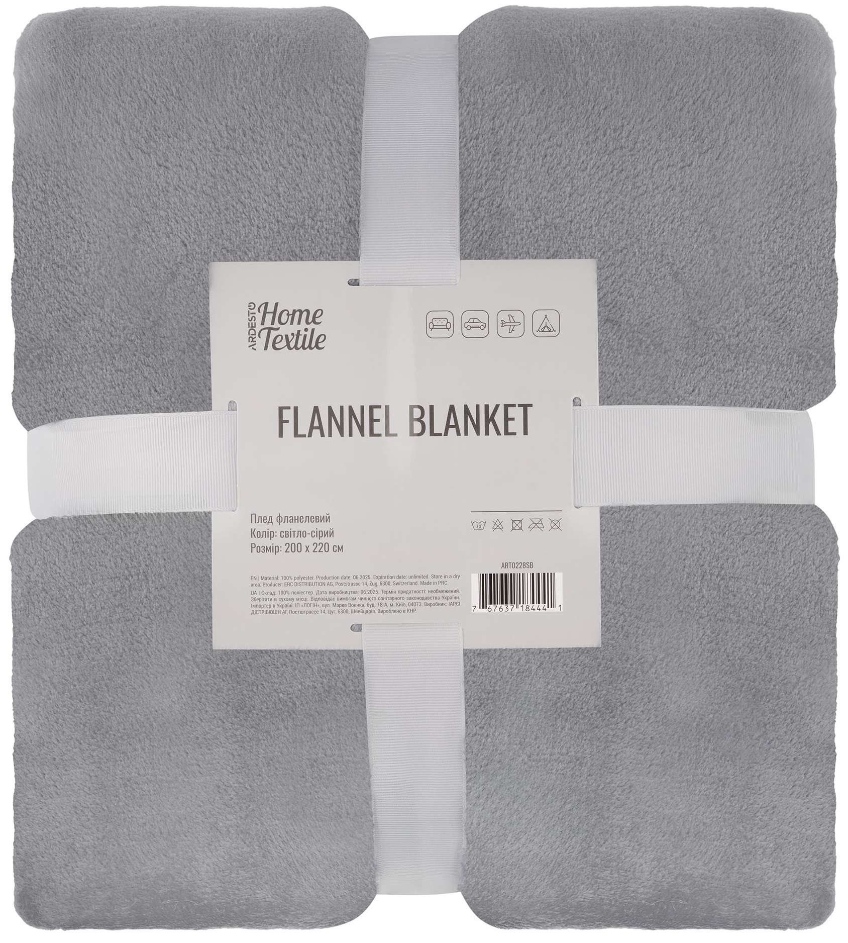 Характеристики Плед ARDESTO Flannel 200х220см, 100% поліестер, сірий світлий код товару ART0228SB