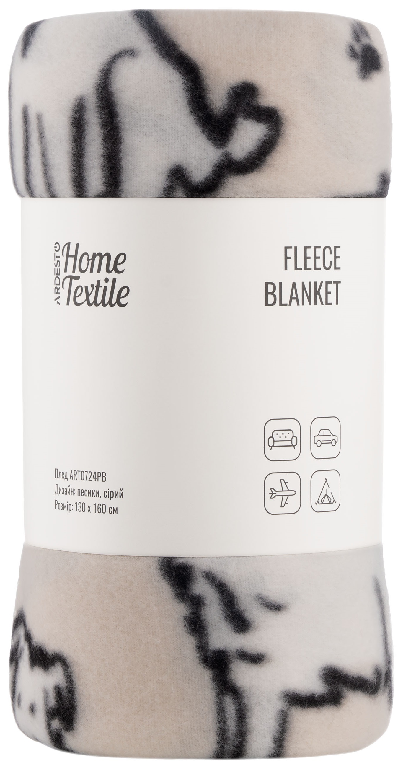 Характеристики Плед ARDESTO Fleece 130x160см, 100% поліестер, песики, сірий код товару ART0724PB