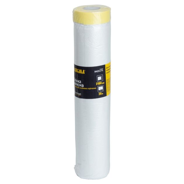 Характеристики Защитная пленка с малярной лентой 2100мм*20м SIGMA (8425171) код товару 8425171