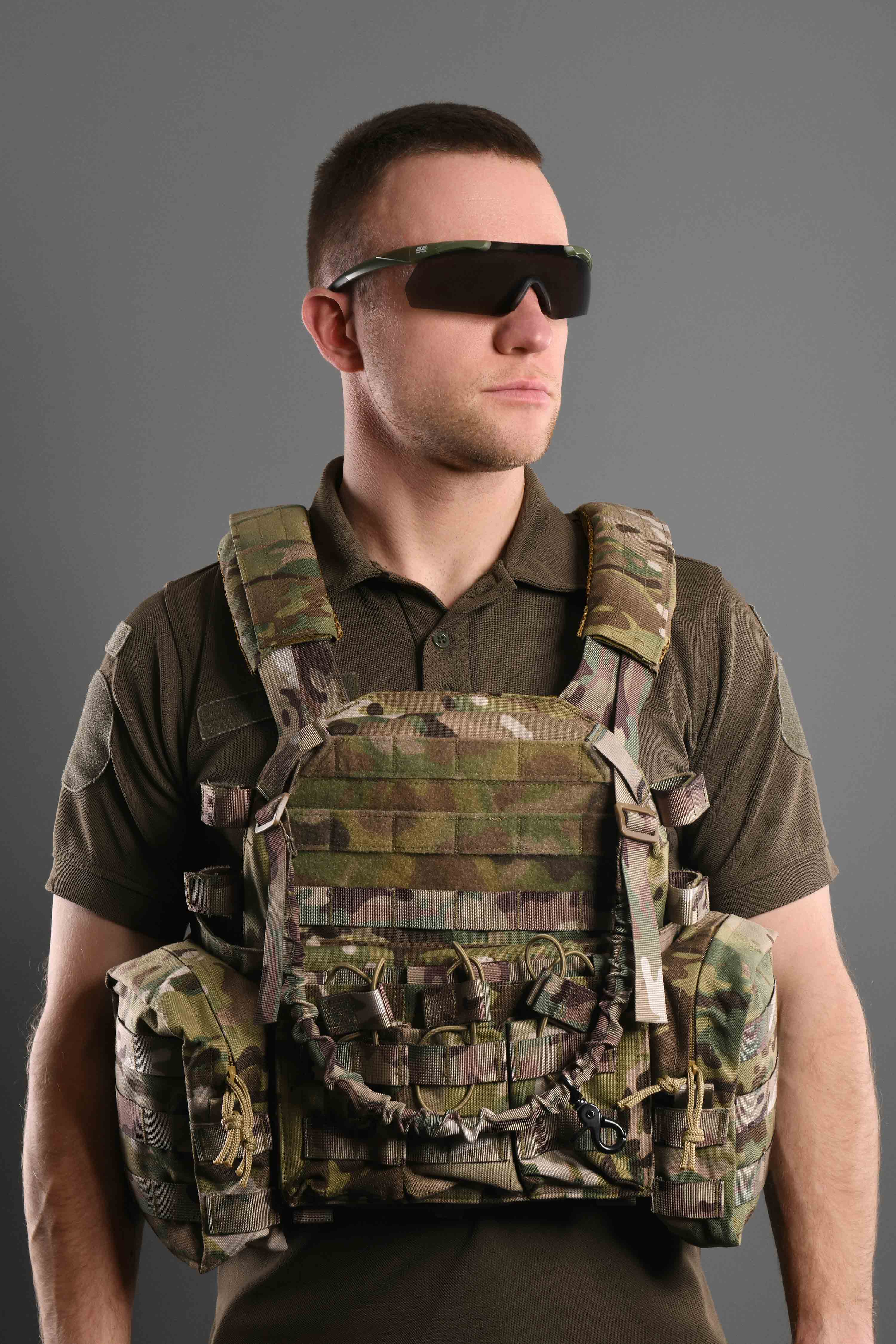 Плитоноска 2Е, Тип 1, з кишенями для бічного захисту і підсумками, Молле, камуфляж