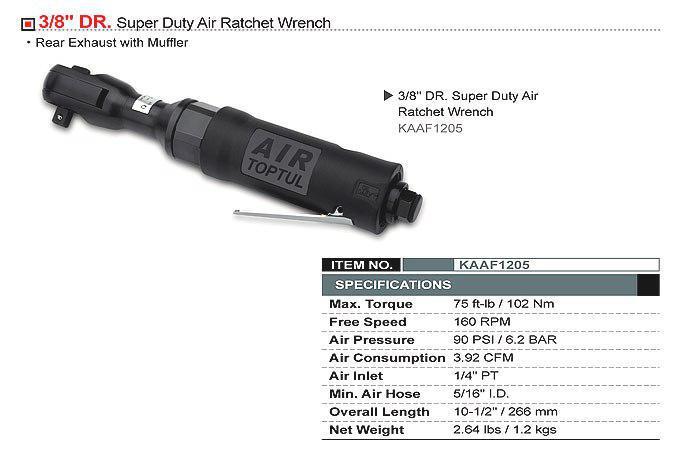 Характеристики Пневматическая трещотка 3/8" 102 Нм 160 об/мин TOPTUL (KAAF1205) код товару KAAF1205
