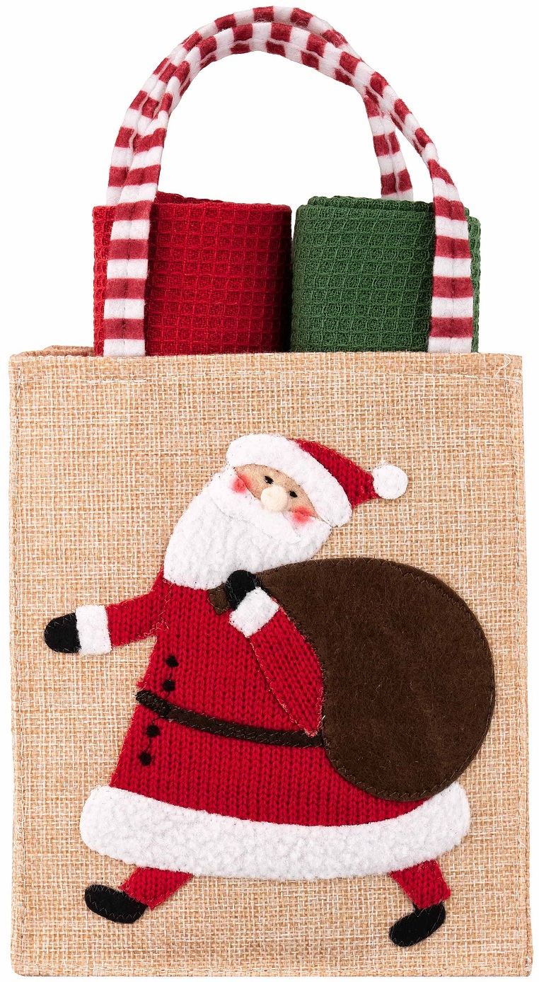 Описание Подарунковий набір рушничків в мішечку ARDESTO Christmas Santa 38х63см, 2шт, 100% бавовна, червоний, зелений код товару ART3863HSB