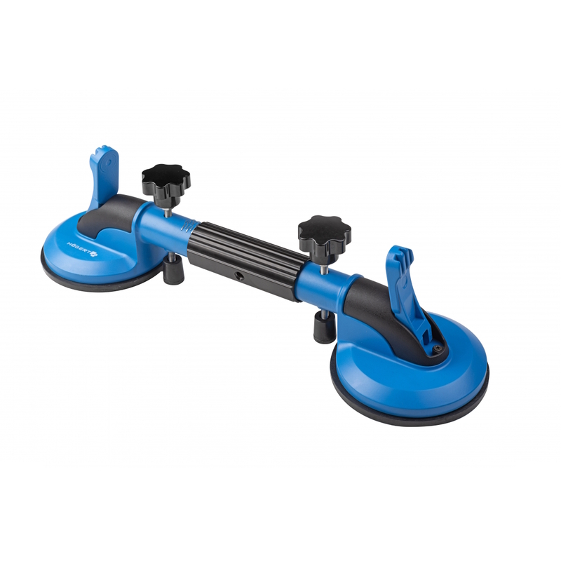 Оснащений регульованою ручкою для встановлення взаємної відстані між присосками та притискними гвинтами, що визначають площину.