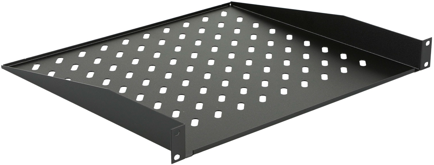 Полиця кутова консольна глибиною 400 мм для встановлення в 19-ти дюймові шафи, стійки, кронштейни. Ідеально підходить для використання у настінних шафах малої глибини. Здатна витримувати навантаження до 30 кг.