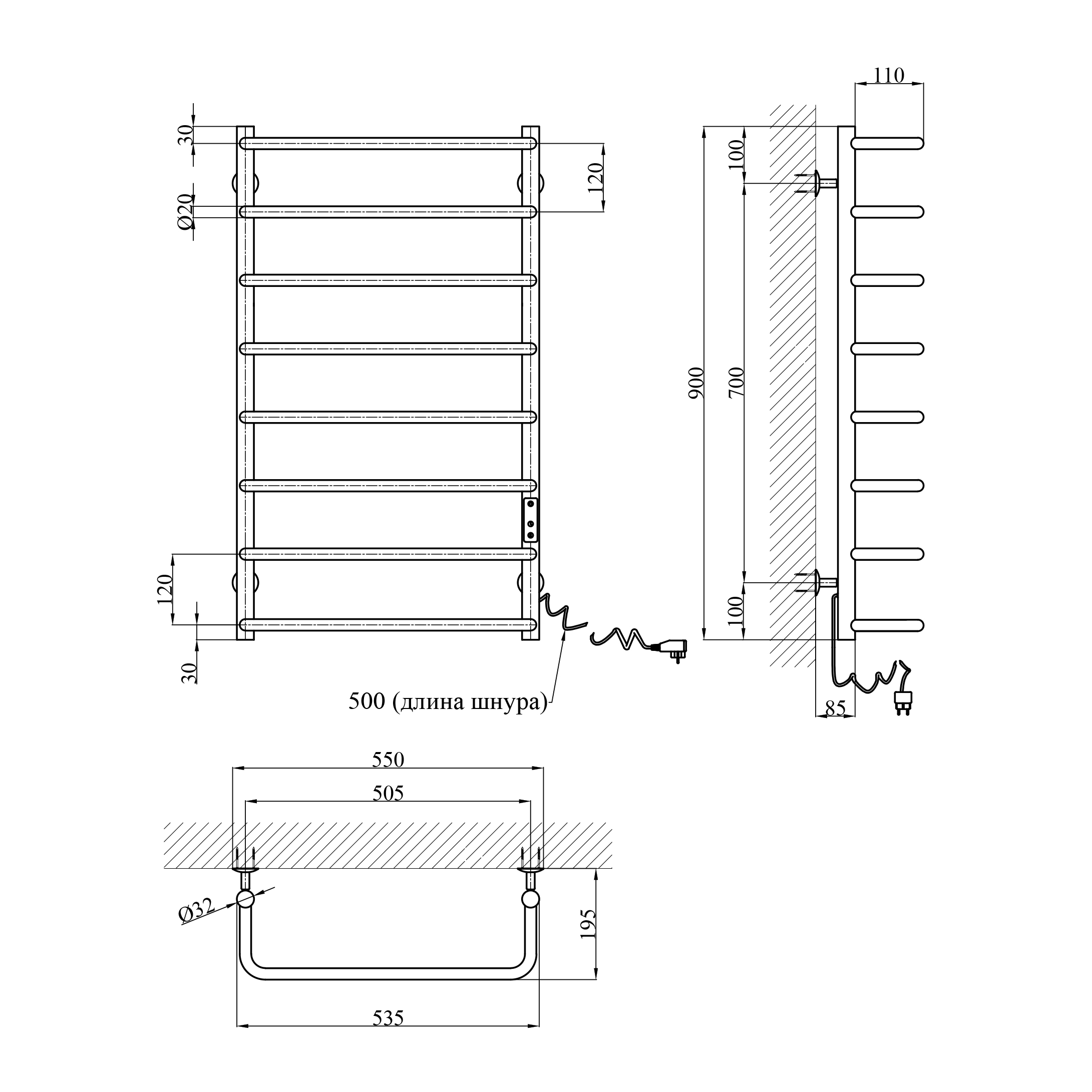 Описание Полотенцесушитель электрический Kroner KRP Stil ER900x500-8 код товару CV036347