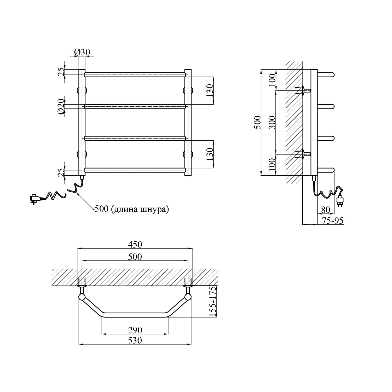 Описание Полотенцесушитель электрический Kroner Трапеция ДТ06EL 500х500/4 код товару CV026135