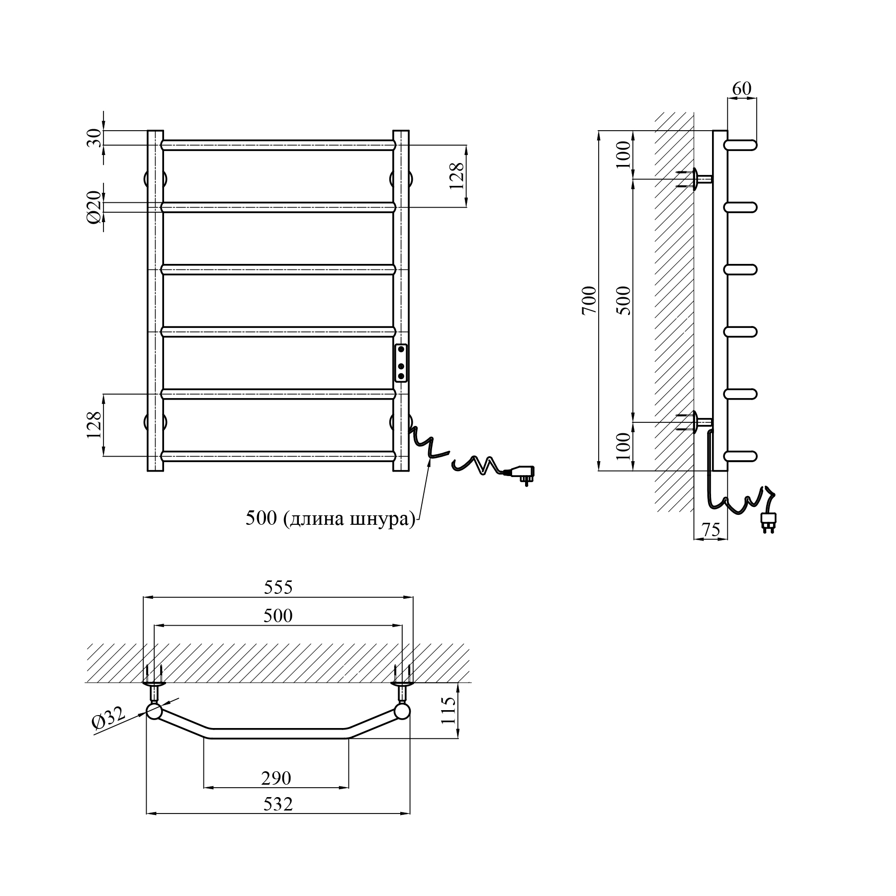 Описание Полотенцесушитель электрический KronerKRP Diva ER700x500-6 код товару CV036323