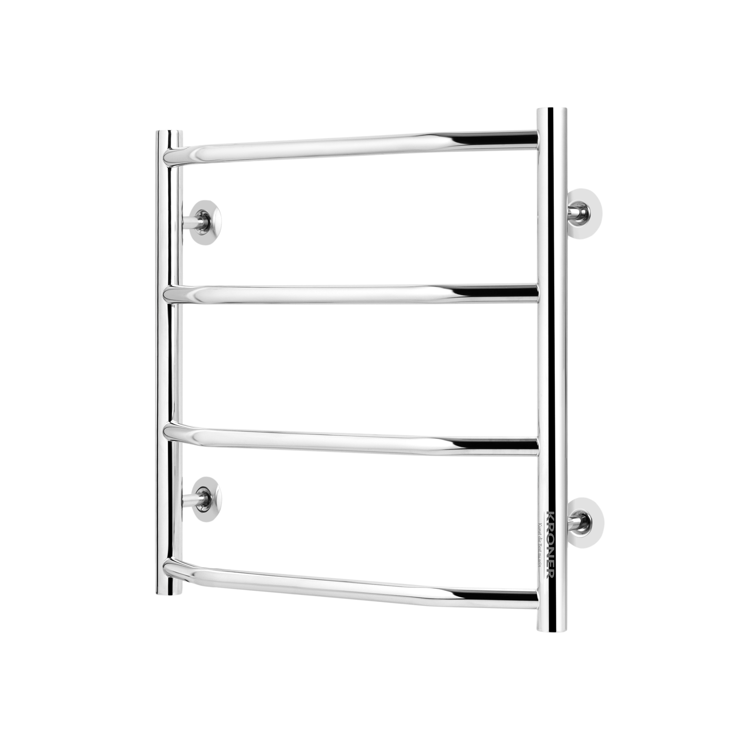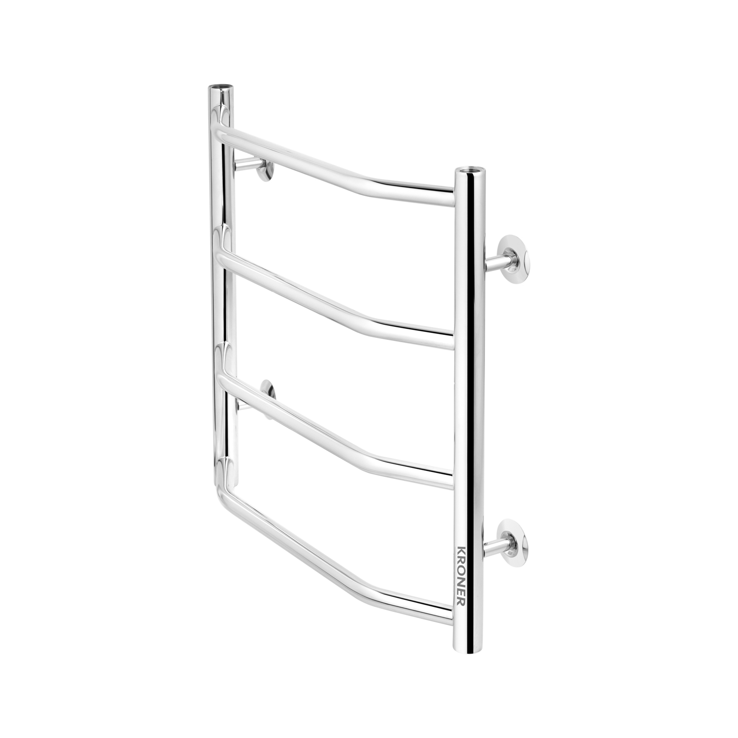 Полотенцесушитель Kroner KRP Diva WT500x500-4 — это водяная модель, предназначенная для сушки полотенец и белья, а также для дополнительного обогрева ванной комнаты. Она подключается к системе отопления или горячего водоснабжения, что обеспечивает ее постоянный нагрев. Эта сушилка имеет классический дизайн, состоящий из нескольких горизонтальных перекладин, идеально вписываясь в любой интерьер.