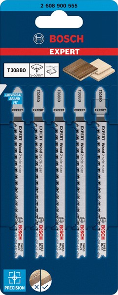 Описание Полотна для лобзиков BOSCH EXPERT 'Wood 2-side clean' T 308 BO, 5 шт. код товару 2608900555