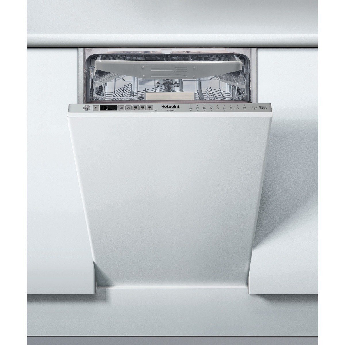 Характеристики Посудомийна машина Hotpoint вбудована, 10компл., A++, 45см, дисплей, 3й кошик, білий код товару HSIO3O23WFE