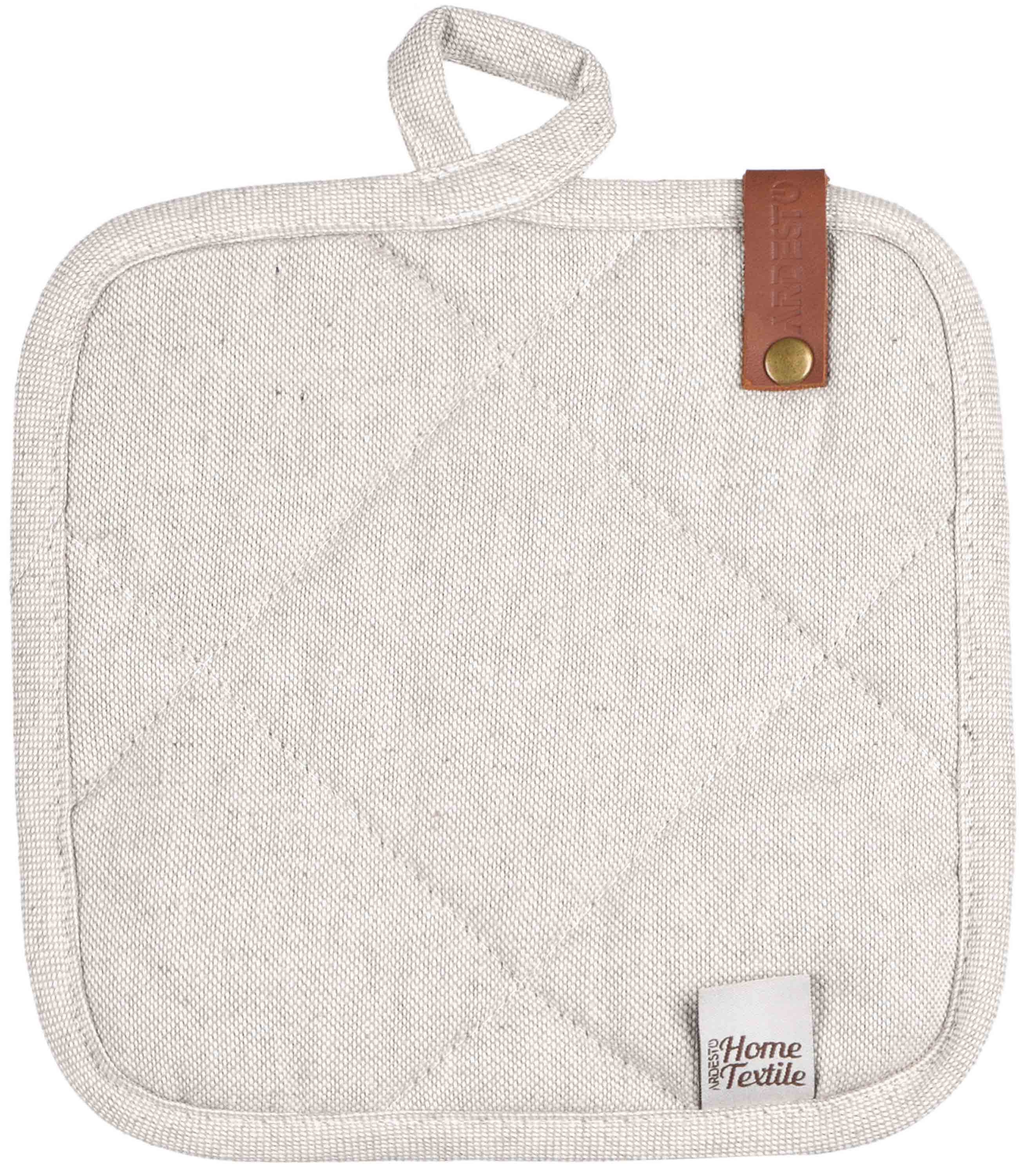 Стильна та практична прихватка світло-сірого кольору стане незамінним помічником на кухні. Вироблена з якісної 100 % бавовни, має розмір 20 × 20 см, що зумовлює універсальність і зручність використання. Наповнювач із ватину забезпечує захист від опіків. Для збереження первинного вигляду прихватки варто дотримуватися рекомендацій щодо догляду: прати в машині за делікатного режиму (30 °C); не сушити в сушильній машині, а тільки у вертикальному положенні; прасувати за температури до 150 °C; також заборонено відбілювання та хімчистка.