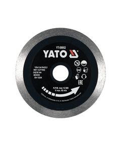 БрендYato Высота режущего сегмента5.3 mm Максимальная линейная скорость диска80 m/s СостояниеНовый Страна производительCN Тип работымокрий Толщина режущего сегмента2.2 mm Химический состав режущего сегментаFe 25%, Cu 53%, Sn 7%, Ni 7%, кожні 8%, алмазне покриття 13% Диаметр125 Диаметр посадочного отверстия22.2 mm Максимальные обороты11000 min⁻¹ Материал изготовлениясталь 65Мн Применениекерамічна плитка, керамічні вироби, глазур, кам'яні плитки, скло, порцеляна Толщина2.2 mm
