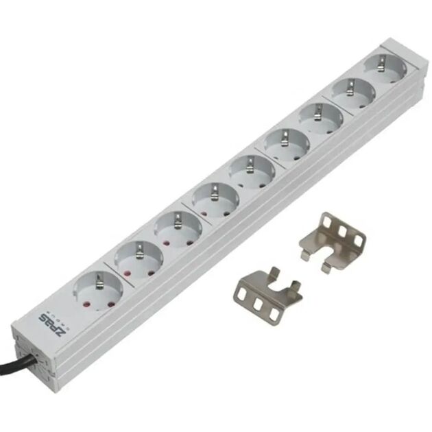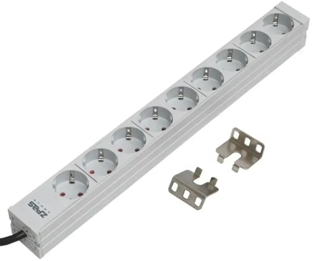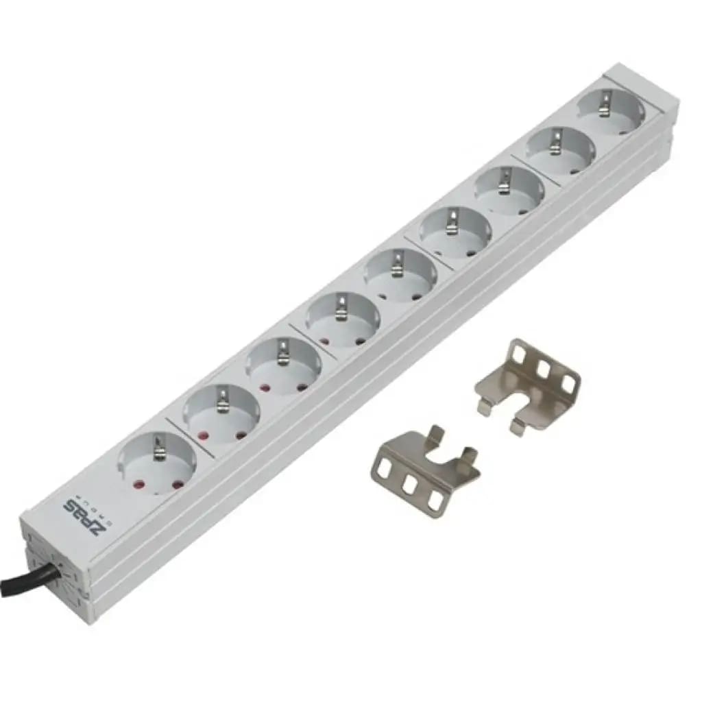 Пристрій розподілу електроживлення ZPAS 19" 1U 9D Shuko без вимикача, вилка С14. Знімні металеві монтажні скоби. Можливість встановлення планки на 4 позиції.