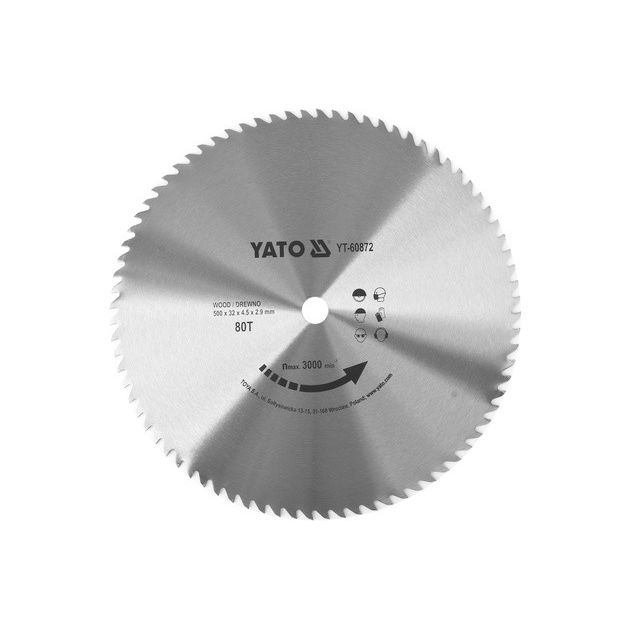 Описание Диск пильный по дереву 500x32x4.5 мм, 80 зубьев YATO (YT-60872) код товару YT-60872