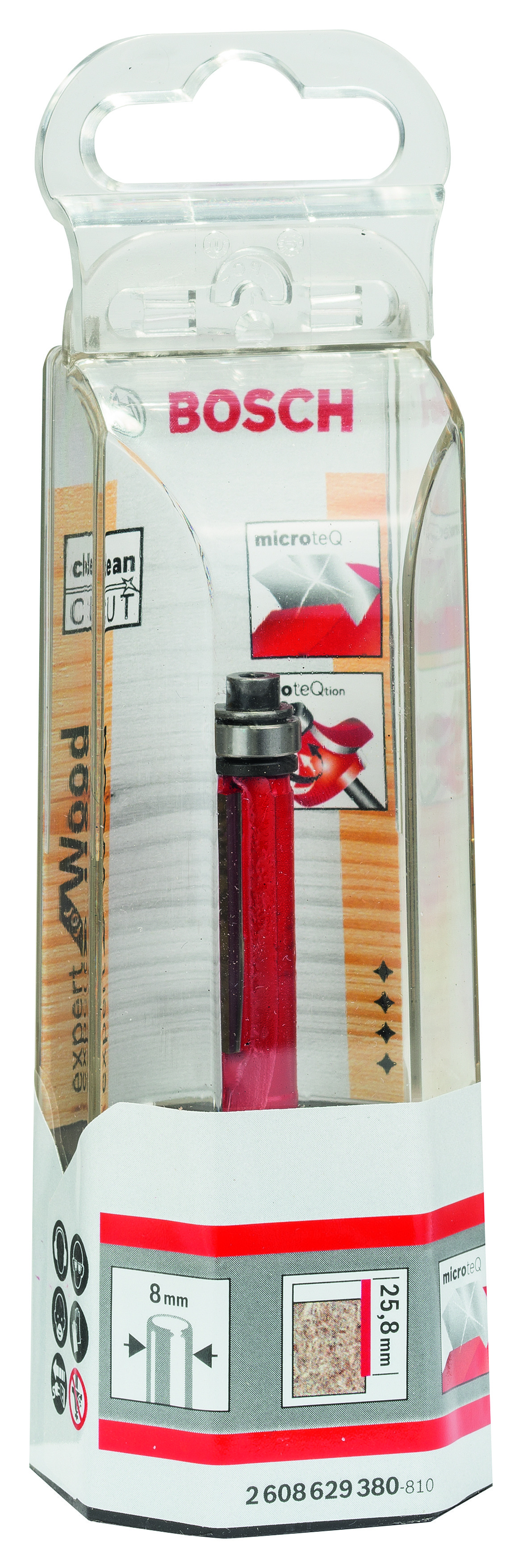 Описание Фреза Bosch 8 мм для заподлицо 9,5*25,8*71,5 мм (2608629380) код товару 2608629380