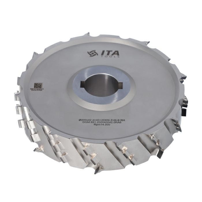 Описание DGM. Фреза насадная DIA D=200 F=40+2CH I=42 Z=8+8 (48) a30° H=6 RH код товару DGM.200040042.0RA6