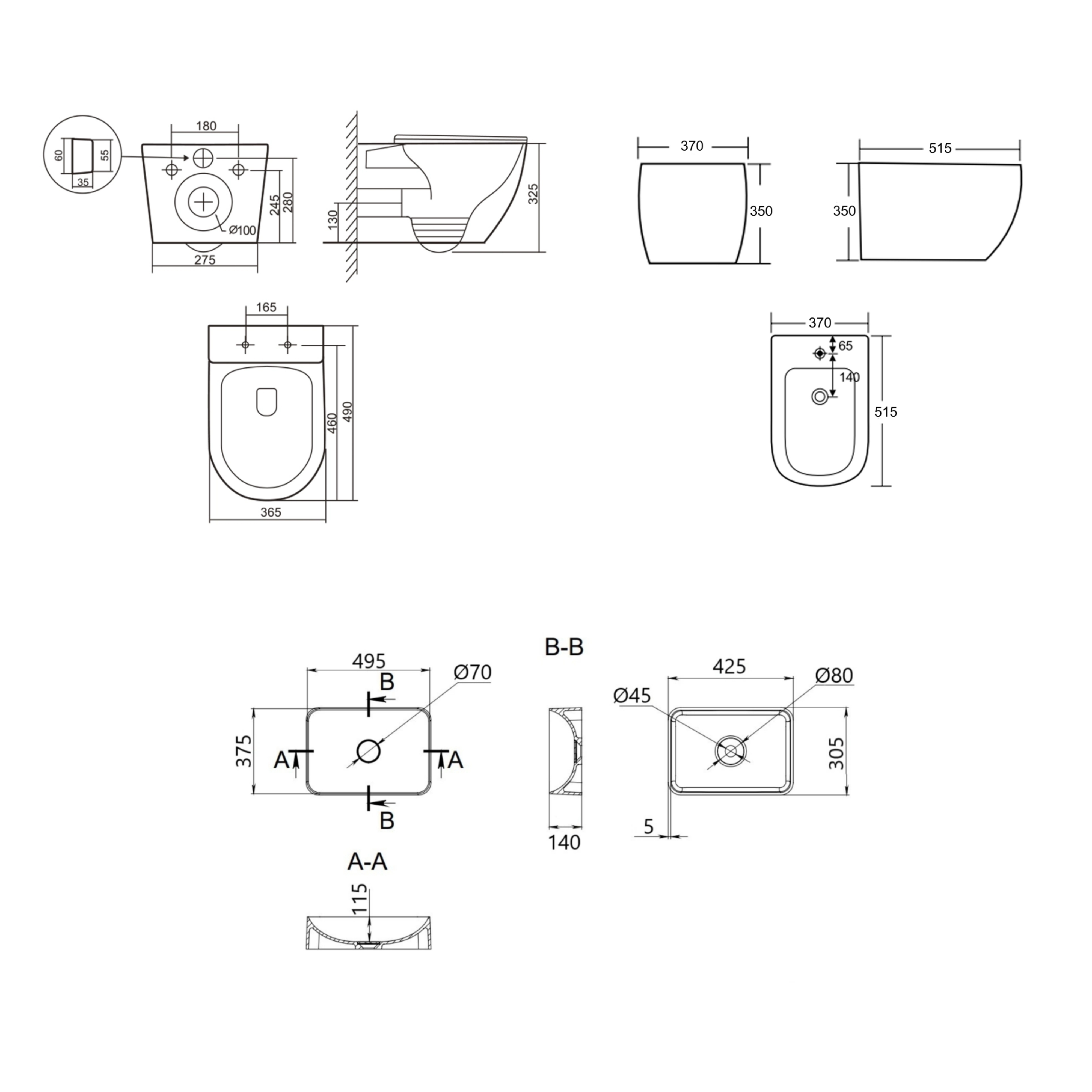 Унитаз (QT13332381АSMR), биде (QT13551381GMR), раковина (QT04116302MR)