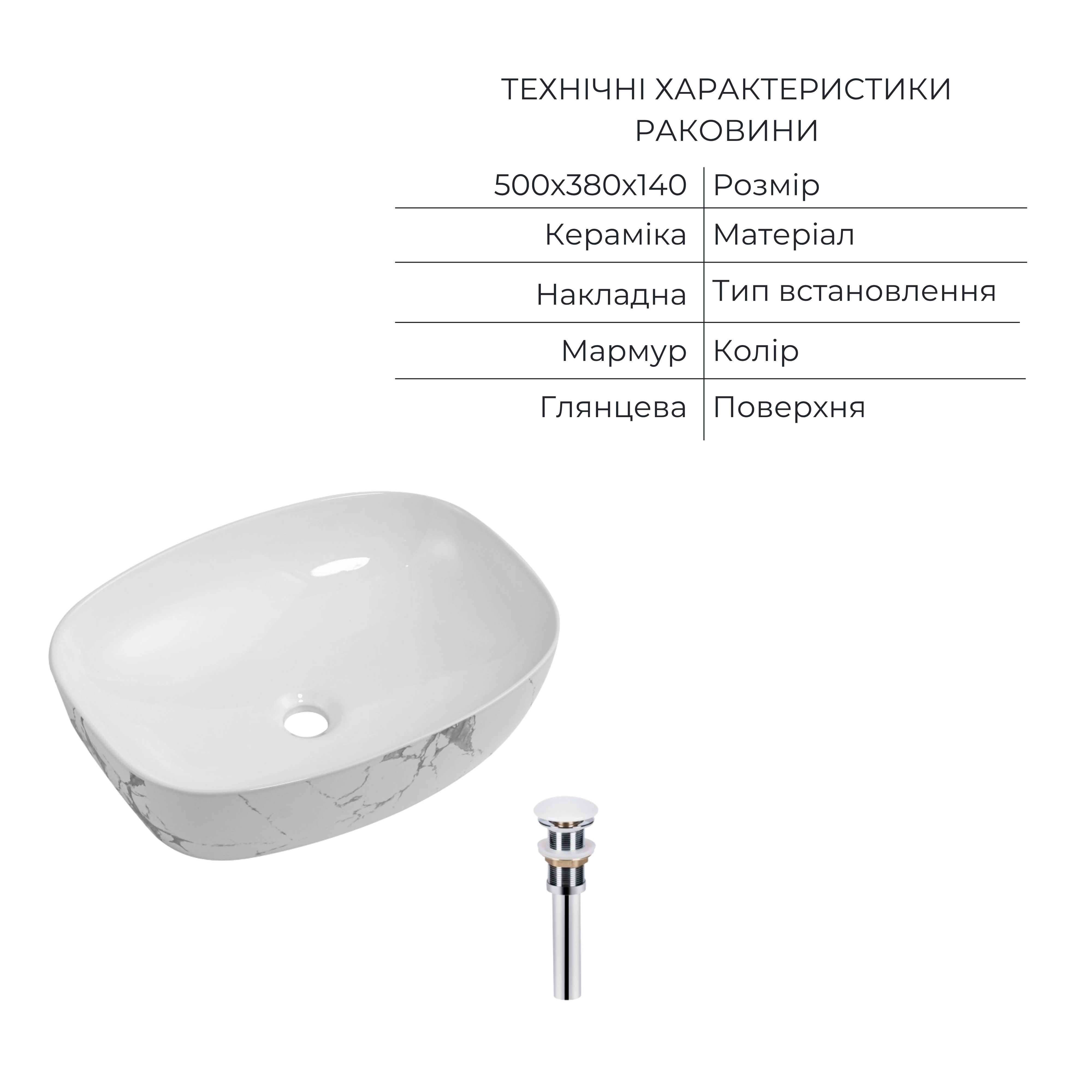 Характеристики Qtap Комплект Robin Marble 3 в 1: унитаз подвесной Ultra Quiet + биде подвесное + раковина накладная QTROBMR49160 код товару SD00055284