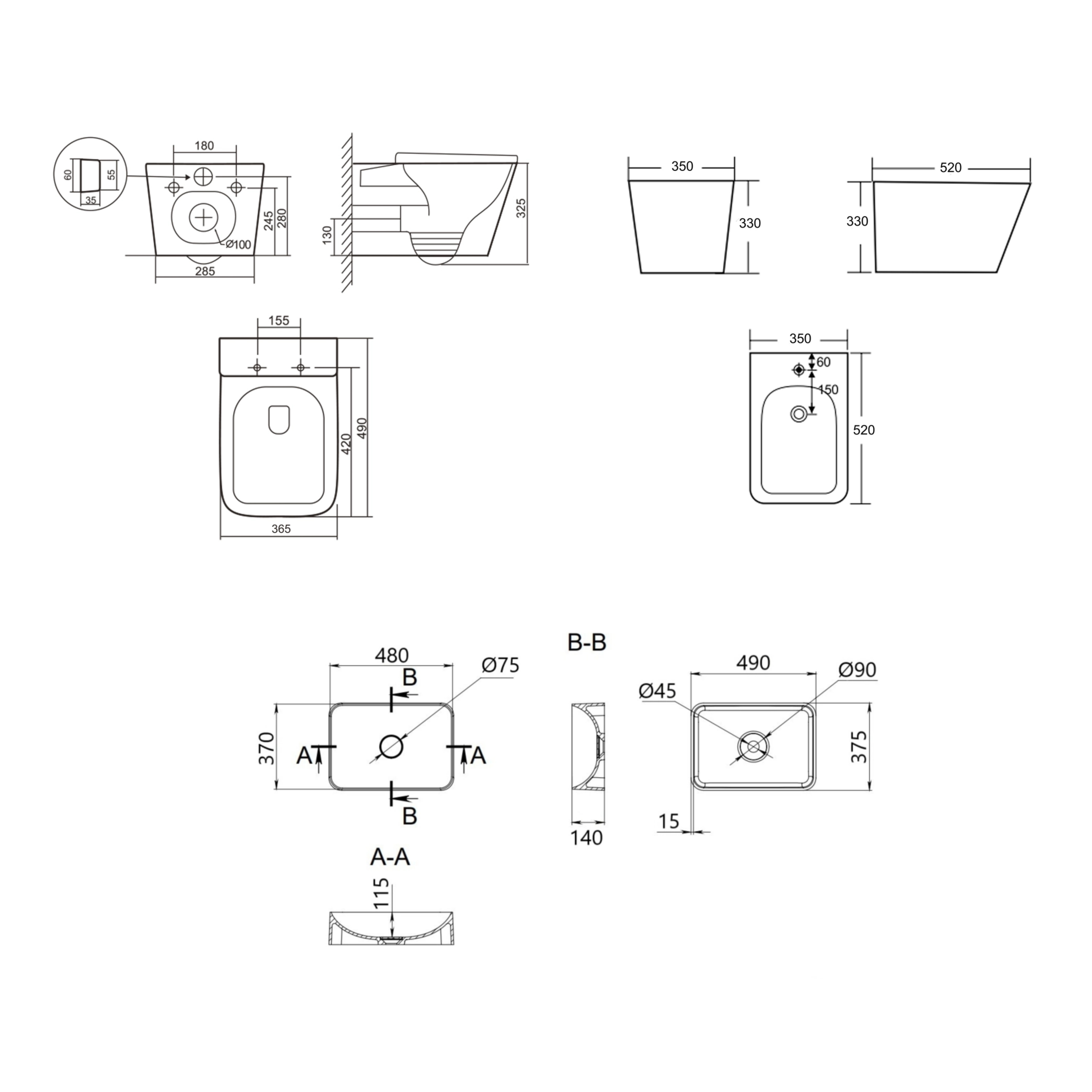 Унитаз (QT17332303ASSB), биде (QT17551303GSB), раковина (QT17116069SB)