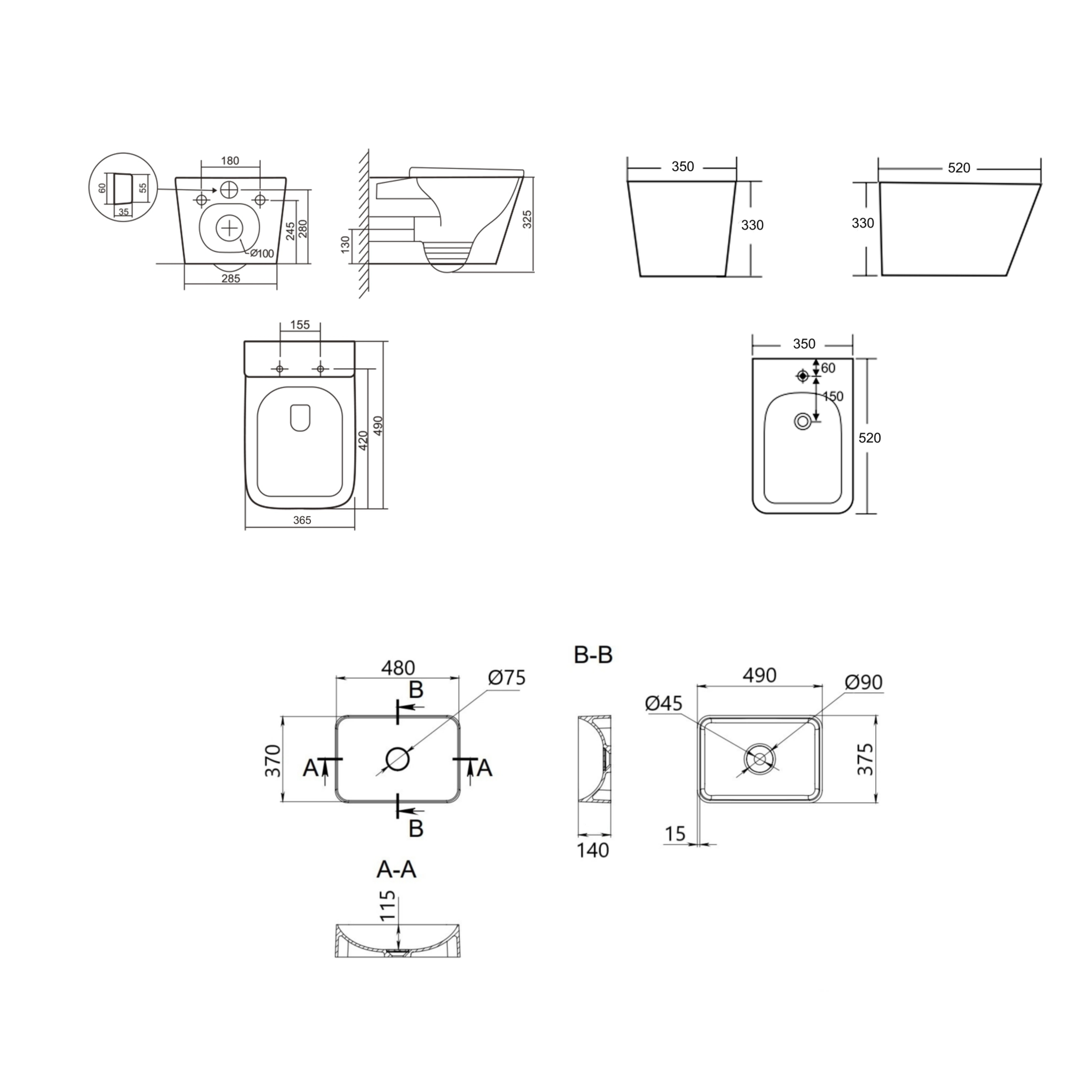 Унитаз (QT17332303ASMR), биде (QT17551303GMR), раковина (QT17116069MR)
