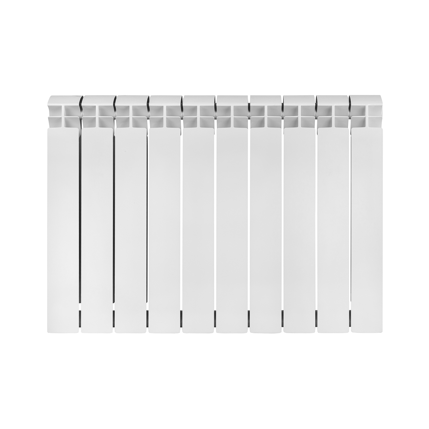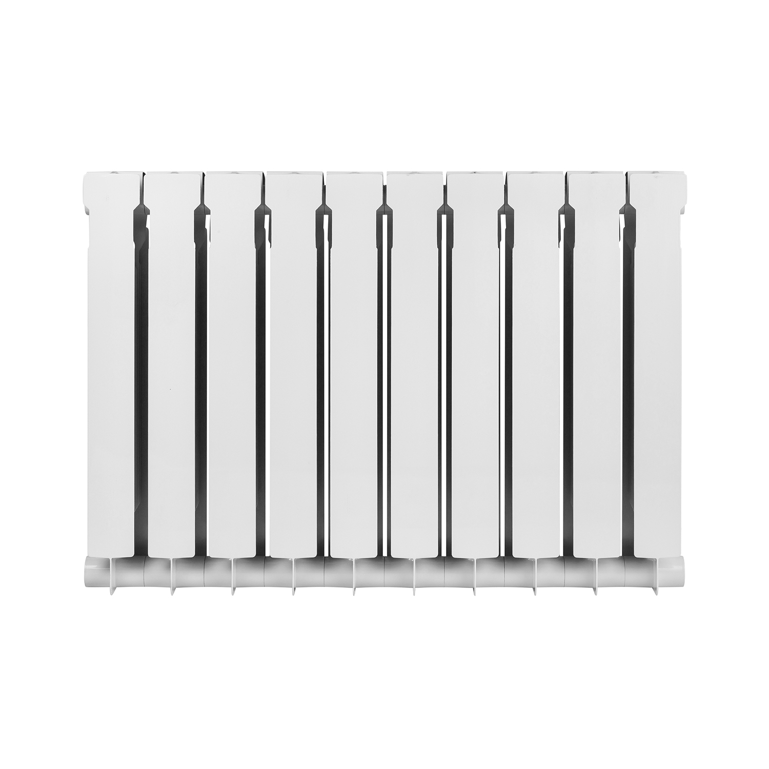 Радиатор состоит из 10 секций, каждая из которых имеет объем 0,3 литра. Секционная конструкция позволяет гибко настраивать количество секций в зависимости от потребностей отопления конкретного помещения. Номинальная мощность каждой секции при температуре теплоносителя 70 ℃ составляет 122 Вт, что обеспечивает высокий уровень теплоотдачи и эффективный обогрев.